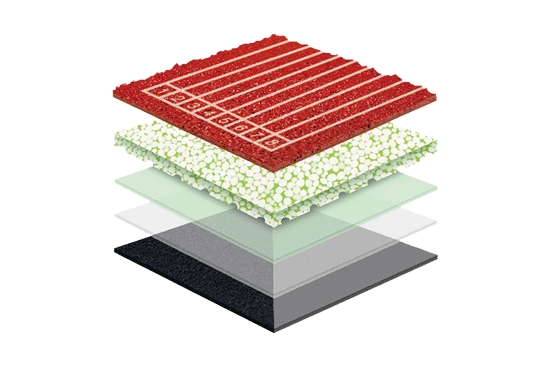 无缝半预制型跑道,采用GDPU弹性颗粒材料,在实现轻量化的同时,还拥有足够的弹性,这一点是传统塑胶跑道比不了的。